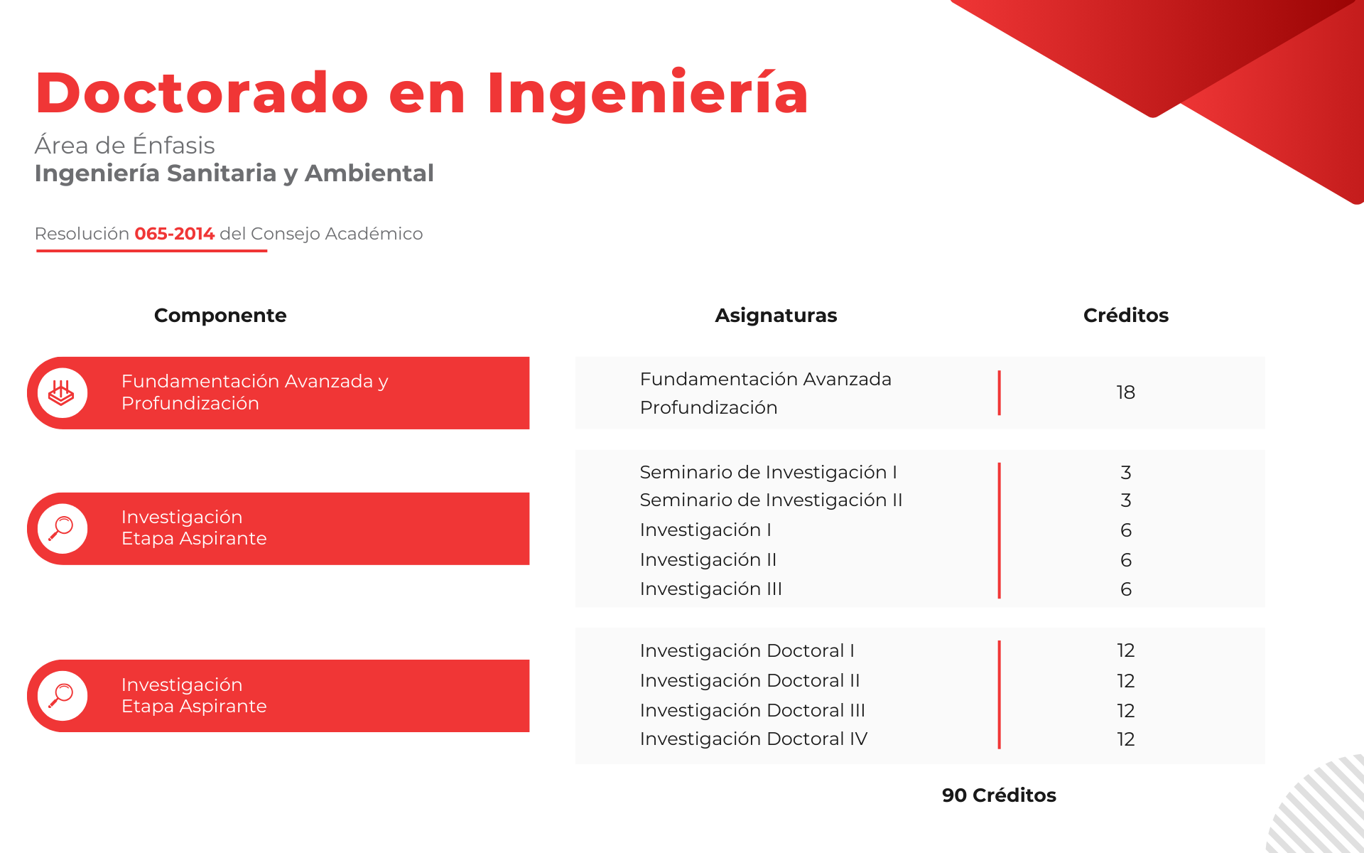 Doctor en Ingeniería Énfasis en Ingeniería Sanitaria y Ambiental |
